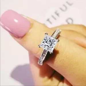 NEW 925 STERLING SILVER DIAMOND ENGAGEMENT RING, CUTE RING, SHINY RING.