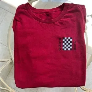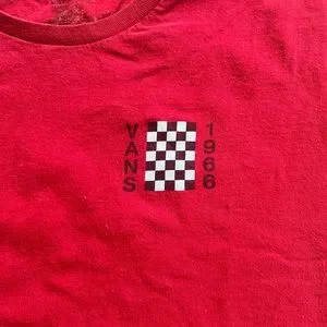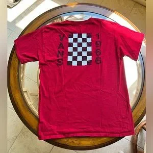 Lightly worn red vans t-shirt, graphic on both front and back checkered design size L Mens good condition
