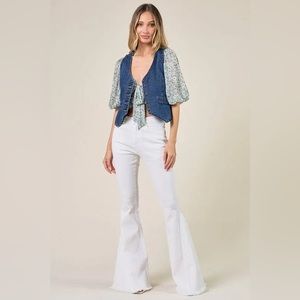 NWT WESTERN RODEO FITTED V NECK DENIM VEST WITH BUTTONS