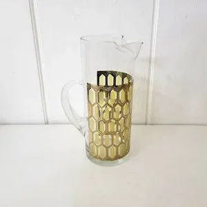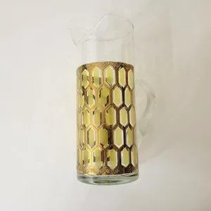 West Virginia Glass Gold Hexagon Pitcher Vintage MCM Madrid Pattern