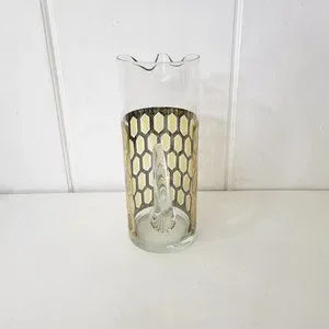 West Virginia Glass Gold Hexagon Pitcher Vintage MCM Madrid
