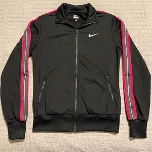 Nike Women's Sportswear Track Jacket Full Zip Black W/Pink Stripe 613658-010 Medium | EUC | measurements in pictures