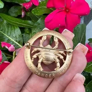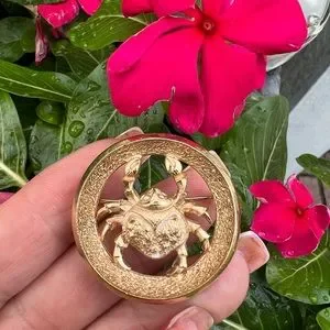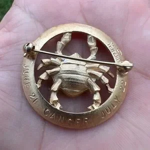 Vintage Crown Trifari 1969 Cancer Zodiac Brooch Gold-tone Astrology Crab