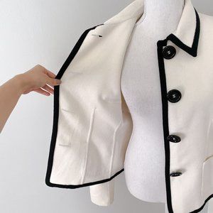 Michael Kors Colorblock Jacket Size 6 White Cream Wool Angora Made In Italy
