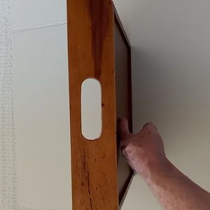 There are a few scratches/dings on 2 sides. They can be touched up with a furniture pen.