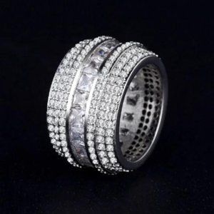 NEW LUXURY 925 STERLING SILVER DIAMOND BAND RING