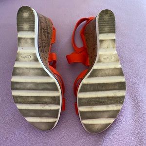 Well loved but plenty of miles left in them. Is and orange red/coral and has a very sailor or nautical vibe to them.