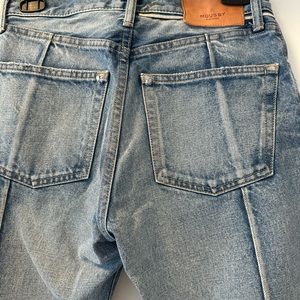 A centre back seam shapes these mid rise jeans, cut from washed vintage style denim with split ankles. Make a statement!