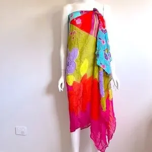 PAREO WRAP/SHAWL Spring Print. Versatile Shape Uses. Vibrant Colours
