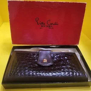 Vintage Brown Pierre Cardin Womens Croc & Calf Skin Wallet - Feminine Classic