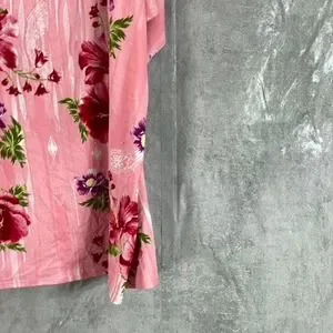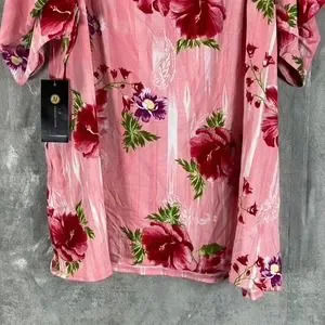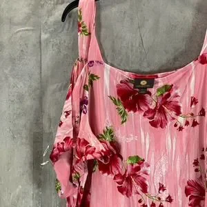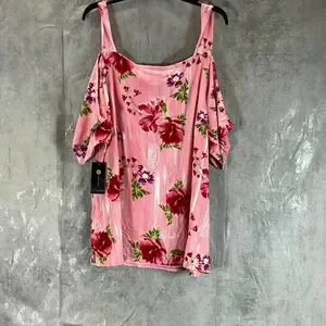 JM Collection Women's Cherry Floral Combo Square-Neck Drapey Cold-Shoulder Top SZ L