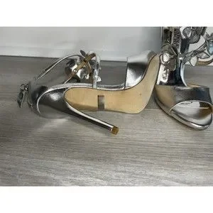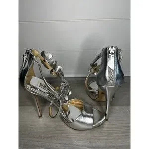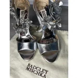 Badgley Mischka Women’s 4.5 inch 3D flower Stilettos Pumps Silver Size 5M