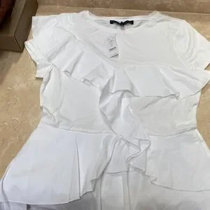 WHBM White Peplum top. Size Small. Very lightweight. Cute, soft and feminine. Can be worn with jean or skirt. Short sleeve.