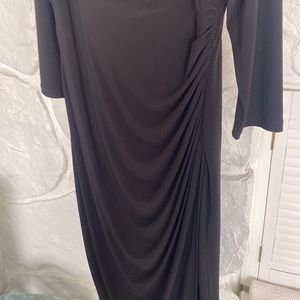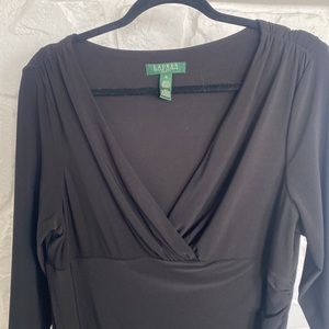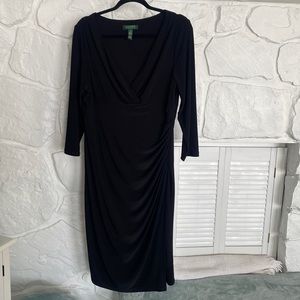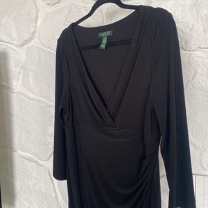 Lauren Ralph Lauren Dress 16 black v neck gathered on the side