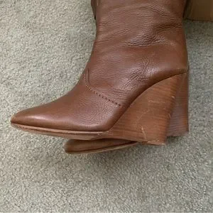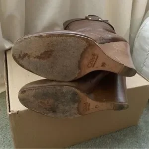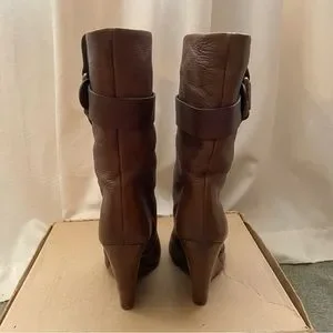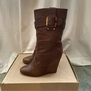 Chloe Prince Paddington Leather Wedge Calf Boots 39 8 8.5 Shoes Brown