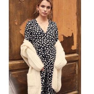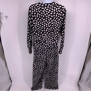 FRNCH Paris 'Mabel Jumpsuit black n cream neutral Pantsuit button up size Small