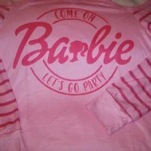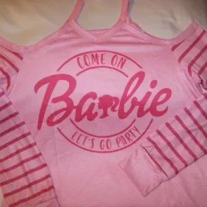 Barbie Come On Let's Go Party Pink Cold Shoulder Knit Top & Earrings Womens Size