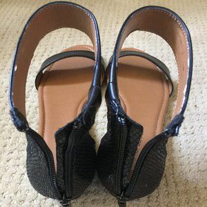 Cosmopolitan Black Faux Snakeskin Ankle Strap Wedge Sandals Size 8