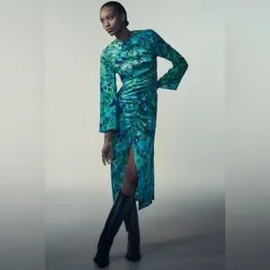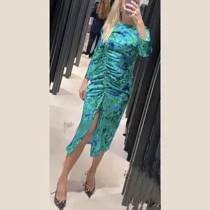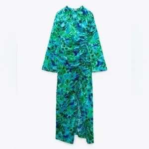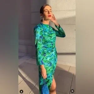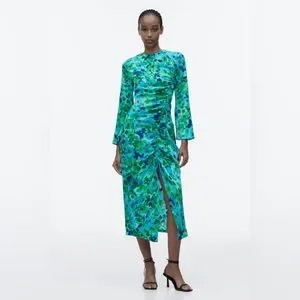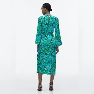 Zara Floral Print Midi Dress in Green Multi Sz XS
