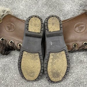 LONDON FOG BROWN LEATHER MID CALF BOOTS FAUX FUR LACE UP CHUNKY Y2K Size UK 6