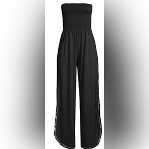 Amazing Summer to Fall transitional jumpsuit! Only 2 smalls left. The most comfortable jumpsuit you will own, the cotton is so soft. The stretch is amazing, flattering on all body types. Sexy slit with pom detail on leg. Brand new with tags. Great with heels, flats, wedges. Can be worn with a jean jacket and some great jewelry!