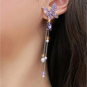 Rhinestone Pearl Butterfly Dangle Earrings