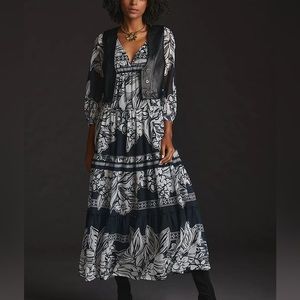 Anthropologie Vineet Bahl Tiered Long-Sleeve Dress