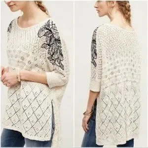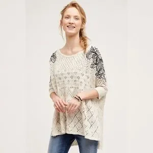 Sold by Anthropologie, Knitted and Knotted Launa floral embroidered poncho sweater in good used condition