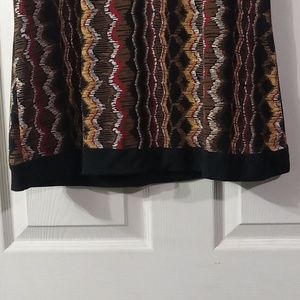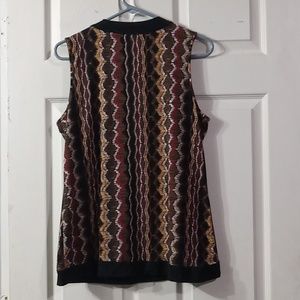 Sleeveless women's blouse in a beautiful multicolor pattern design, V neck ending with a black hanging lace to give that elegant style, fresh and lightweight material, gently worn, perfect condition, 95% polyester, 5% spandex,, size XL.. free smoke/pet home..