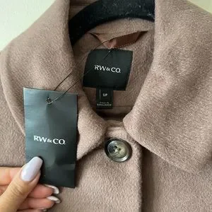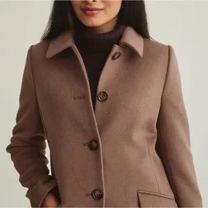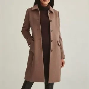 NEW RW&Co Classic Wool Fitted Preppy Coat in Deep Taupe