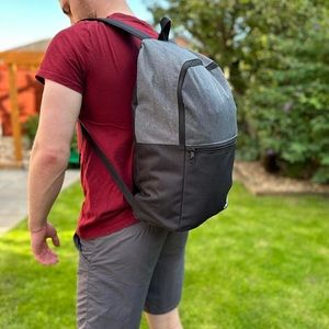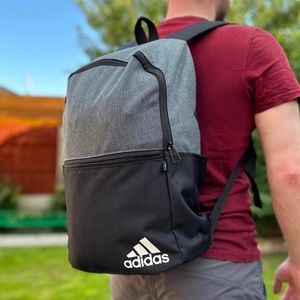 Adidas grey and black school bag. Festival over shoulder bag with zip compartments, printed Adidas 3 stripe logo in white on the front, drinks pouch on the side and adjustable straps. Comes brand new with tags and in packaging