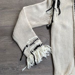 For Love and Lemons Knitz Denver Cardigan Sweater Chunky Knit Fringe Ivory