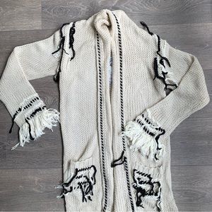 for love & lemons, open front, fringe, western, boho, knit, costal