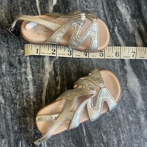 Beautiful like new pair of Christian Dior sandals size 4.5 or 20 Italy. Let me know if you need additional photos or measurements or have any other questions. They are silver leather with metal buckle strap closures.