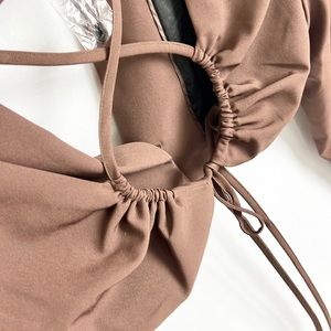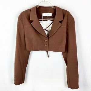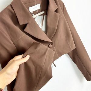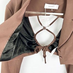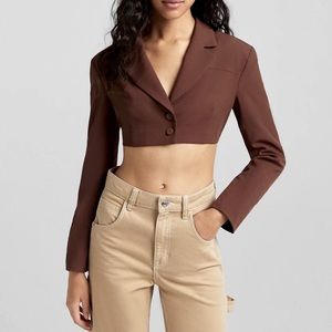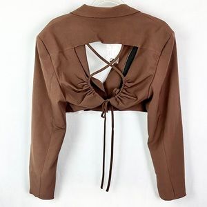 BERSHKA |🤎 Chocolate Brown Open-Back Cropped Co-Ord Blazer Top ✨NWT!✨