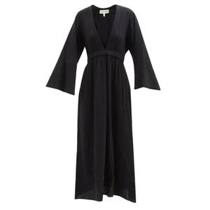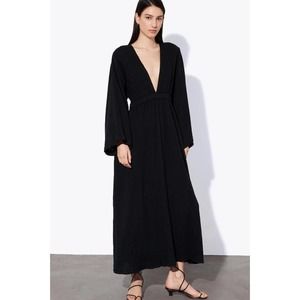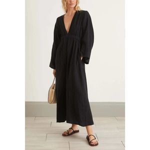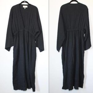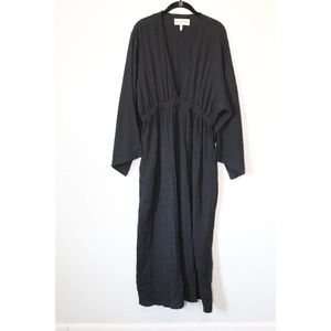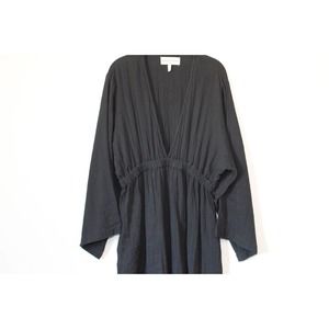 Mara Hoffman Blair Deep V-neck Long Sleeve Maxi Coverup Dress Black Large H14113