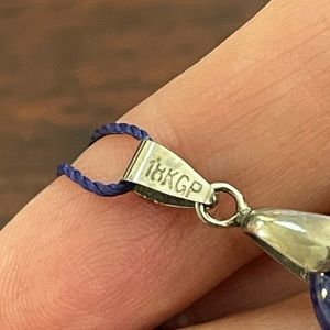 Natural lapis lazuli gemstone 18K gold plated bail pendant and blue silk cord