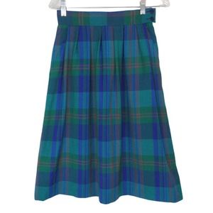 Vintage Miss Pendleton Blue Plaid Pleated Midi Skirt Virgin Wool Women’s XS