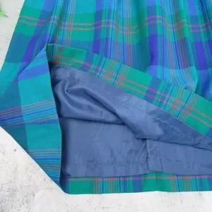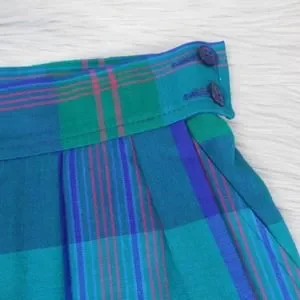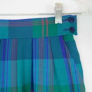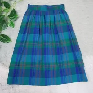 Vintage Blue Plaid Pleated Midi Skirt Virgin Wool