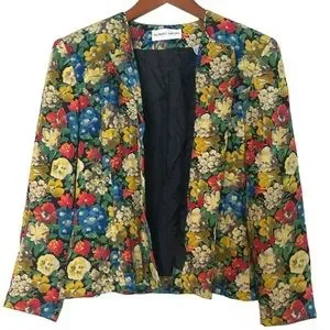 Albert Nipon VTG Womens Silk Colorful Floral Button Front Cropped Blazer Size 8