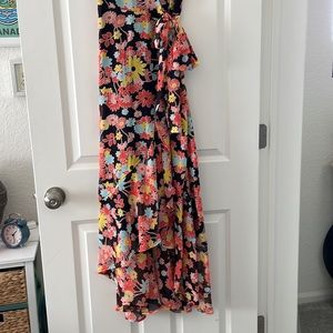 Wrap maxi dress. Size M. Bright floral pattern. Flowy bottom. Stunning pattern! From shoulder to longest part of the bottom 56.5 inches long