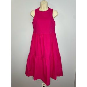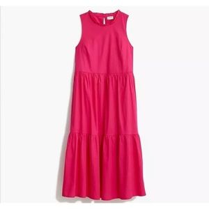 J.Crew Factory Pink Midi Sleeveless Ruffled Neckline Tiered Pink Dress