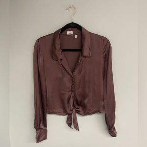 Wilfred Chocolate Brown Tie-Front Blouse from Aritzia
