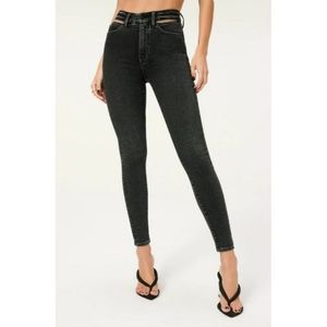 Good American Jeans womens 2/26 Black Good Waist Slit waistband skinny jeans