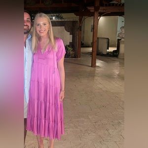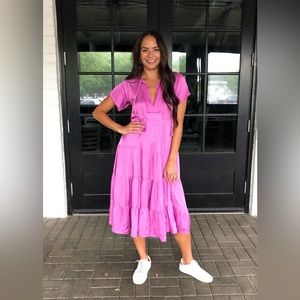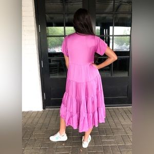 KARLIE Catalina Tiered Midi Dress in Magenta SZ S