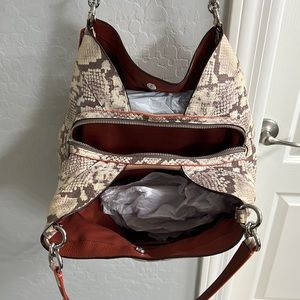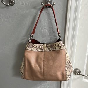 Polished pebble leather with python-embossed leather trim