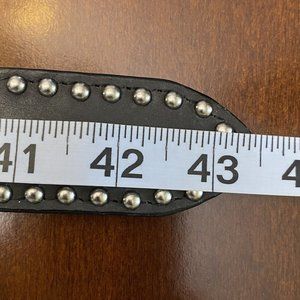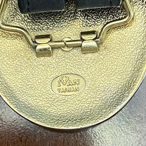 This Unisex vintage belt (buckle) from Ivan features a stunning silver and gold engraved horse head buckle (made in Taiwan ) that adds a touch of elegance to your wardrobe. The studded and tooled design of the black leather belt is perfect for casual, everyday wear or for a night out at a party. The belt is unisex and can be worn by anyone looking for a touch of rockabilly style. The country of origin for this original piece is China, and it is a perfect addition to any vintage accessories collection. Belt width: 1.5”, length: 43.5” without buckle. Please note belt buckle is an original vintage from Ivan made in Taiwan, the leather studded tooled genuine leather belt it not an original belt from Ivan. ( made in China) please see all pictures for details