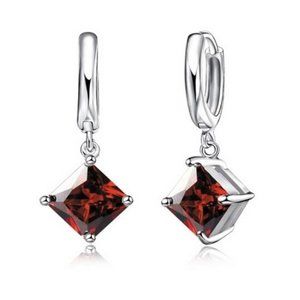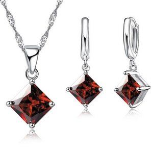 ❤️ 925 Sterling Silver Earrings And Necklace Set Square Shape Drop Cute Top