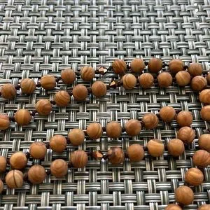 It’s made by Tocara. I imagine they are real sandalwood beads.