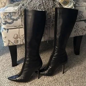 Extraordinarily cared for black, knee-high Jimmy Choo boots in “like new” condition despite “vintage” status. Front gold zippers. In original box with authenticity card and dust cover. Will not respond to lowball offers. These boots are special. Reference for sizing - I wear a US 7 and a 37.5 EU.